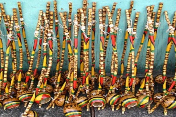 Der Berimbauist ein Musikbogen aus dem Nordosten Brasiliens. Im Süden des Landes heißt er urucungu. Der Saitenträger besteht aus einem gebogenen Holzstock , an dessen beiden Enden ein Draht als Saite befestigt ist.